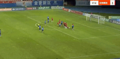 第17分钟,大连鲲城前场任意球机会,崔明安一脚远射洞穿球门,大连鲲城1-1定南赣联。↓